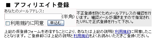 という画像があります。これをクリックします。 そこではアフィリエイトのシステムを説明しているので、ざっと目を通して見てください。